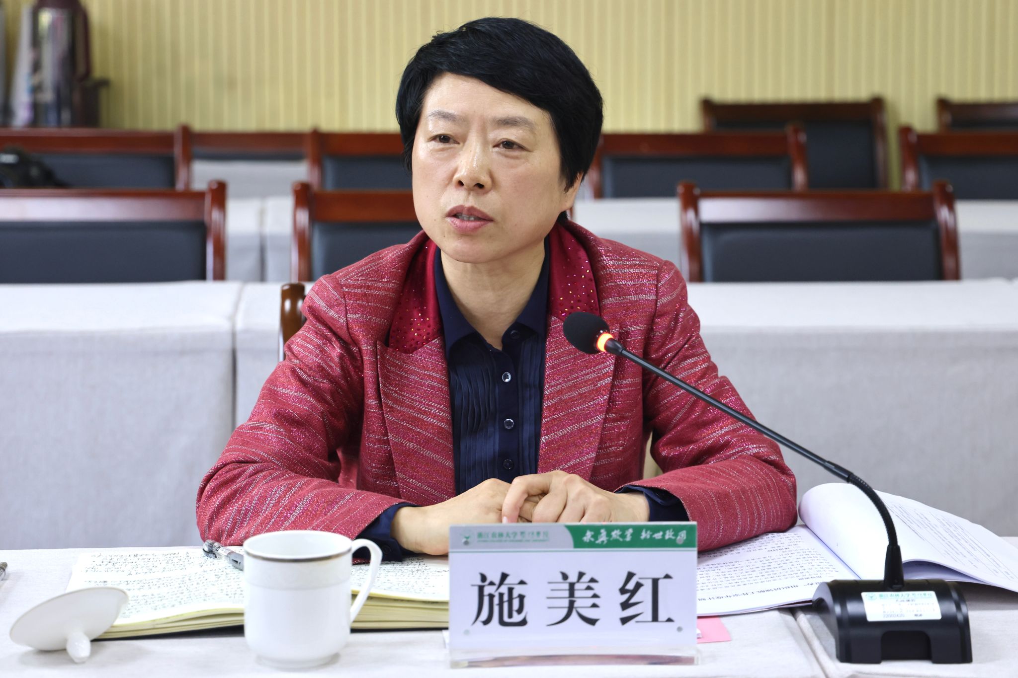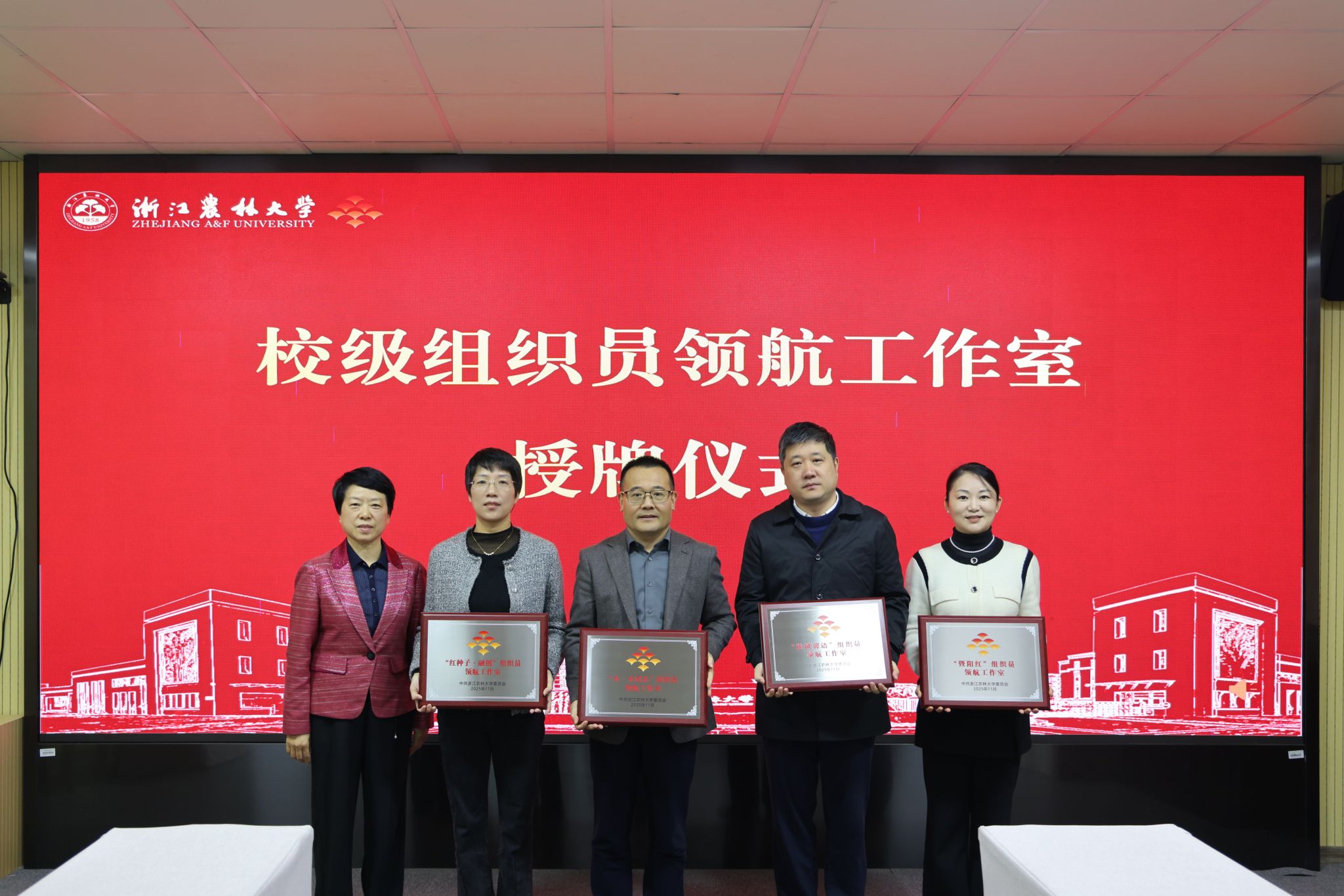 校党委副书记施美红为4个新成立的校级组织员领航工作室授牌;暨阳学院党委书记洪昀围绕“党建引领高质量发展”主题,介绍了学院“暨阳红·五心融领”党建工作体系。